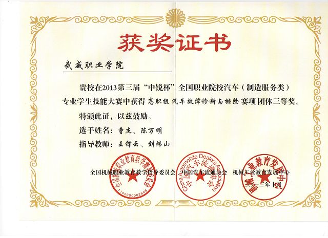 我院學(xué)生在第三屆“中銳杯”全國職業(yè)院校汽車專業(yè)學(xué)生技能大賽中獲獎