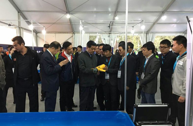 圖:全國(guó)政協(xié)前主席賈慶林一行蒞臨大賽現(xiàn)場(chǎng)參觀(guān)指導(dǎo)