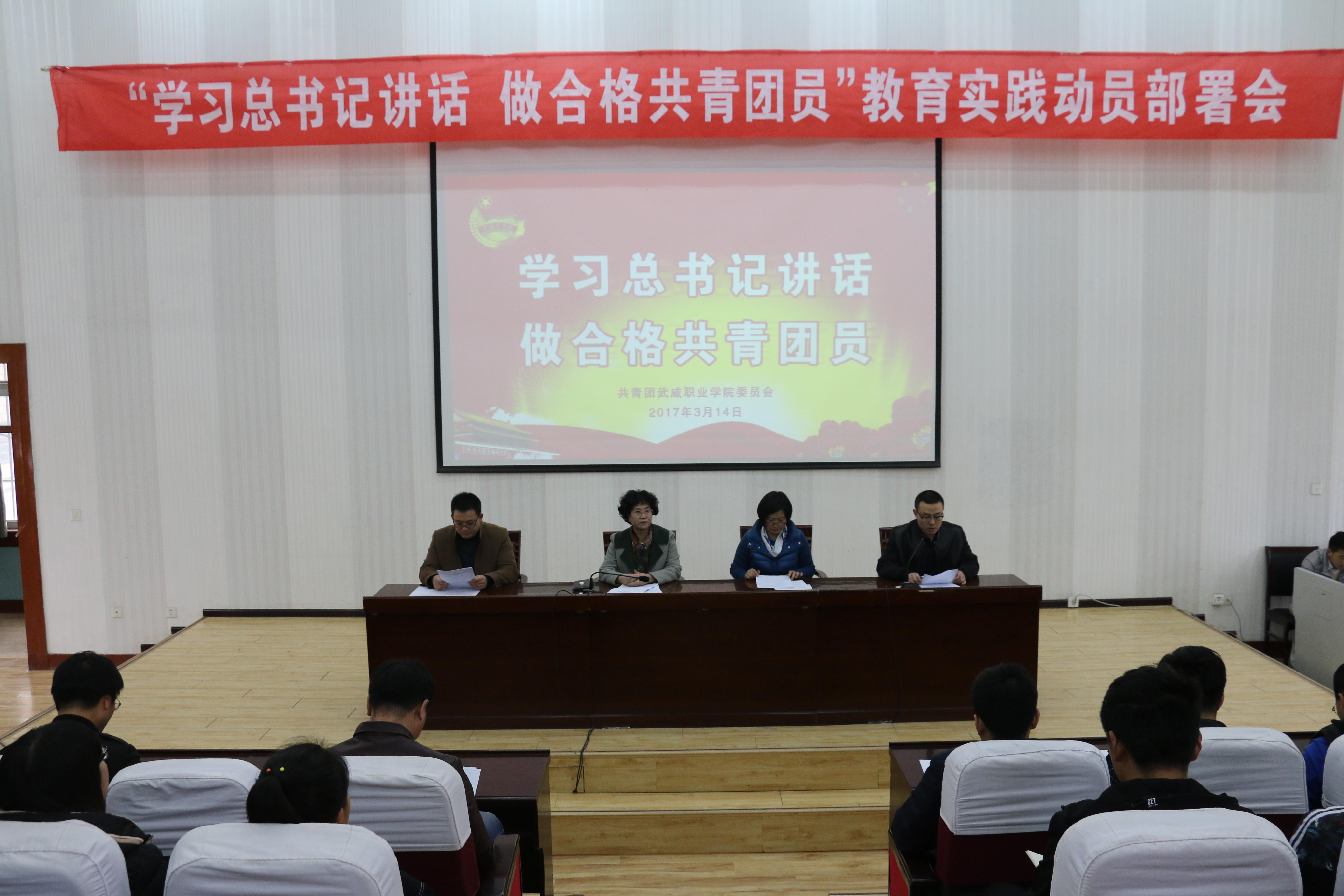 會議傳達(dá)了《共青團(tuán)武威職業(yè)學(xué)院委員會2017年工作要點(diǎn)》、《關(guān)于學(xué)院共青團(tuán)開展“學(xué)習(xí)總書記講話 做合格共青團(tuán)員”教育實(shí)踐的通知》,并對“一學(xué)一做”教育實(shí)踐作了安排部署。