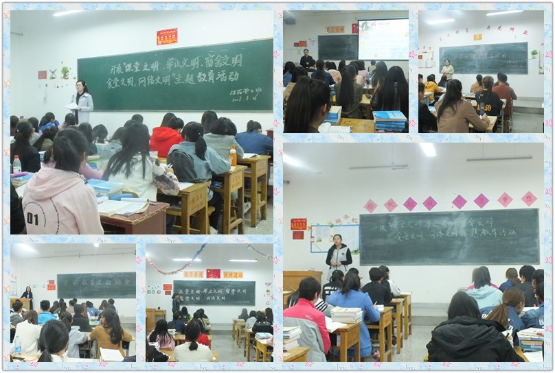 各班班會(huì)從什么是文明講起,聯(lián)系生活實(shí)際,講述校園文明、家庭文明和社會(huì)文明的重要性。各班主任首先向同學(xué)們闡述了對(duì)于當(dāng)代大學(xué)生來(lái)說(shuō),文明修身和專(zhuān)業(yè)學(xué)習(xí)同等重要,專(zhuān)業(yè)學(xué)習(xí)主要培養(yǎng)大學(xué)生的科學(xué)精神,而文明修身主要培養(yǎng)大學(xué)生的人文精神,二者缺一不可。通過(guò)講述身邊同學(xué)的故事,指出校園、家庭和社會(huì)上存在的不文明、不和諧現(xiàn)象,要求同學(xué)們對(duì)自身言行舉止進(jìn)行約束,共同攜手,提高自身文明行為,提升大家的思想道德和人文素質(zhì)。隨后,由同學(xué)們就“文明行為”發(fā)表了自己的看法,大家由主題聯(lián)想到自己身邊的一些不文明的行為,并就這些不文明行為發(fā)表了自己觀點(diǎn),同時(shí),同學(xué)們就如何提高自身道德素養(yǎng)、如何更好地做到文明修身提出了自己的建議和意見(jiàn)。經(jīng)過(guò)同學(xué)們的積極發(fā)言和認(rèn)真討論,大家認(rèn)為只有文明的個(gè)人才會(huì)有文明的班級(jí)團(tuán)體,才會(huì)有文明的校園,才會(huì)有和諧的社會(huì)。