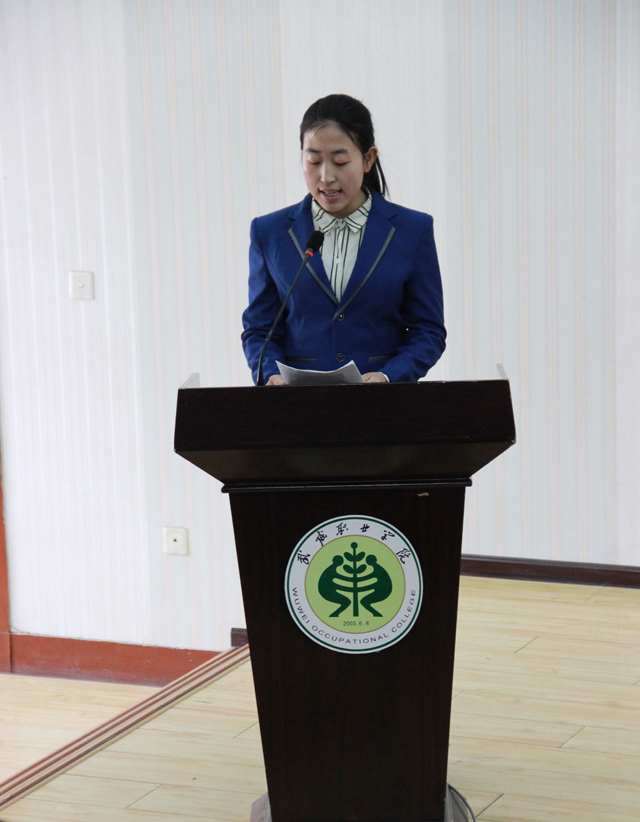 2013級王婷同學(xué)代表學(xué)生發(fā)出倡議,要胸懷大志,以崇高的理想信念提升前進的動力;要勤奮學(xué)習(xí),以淵博的知識打好前進的根基;要呵護心靈,以更加健全的心智創(chuàng)造更好的成才之路。