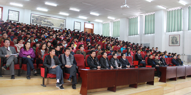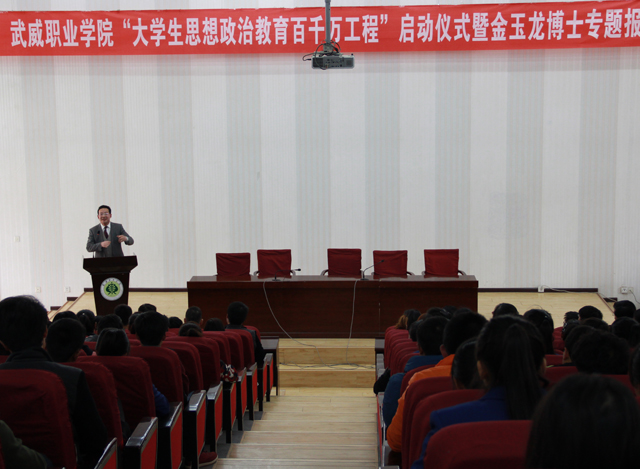 啟動儀式后,學(xué)院心理學(xué)博士、副教授金玉龍為師生就 “就業(yè)與心理健康”做專題報告。(學(xué)生處 秦娜供稿)