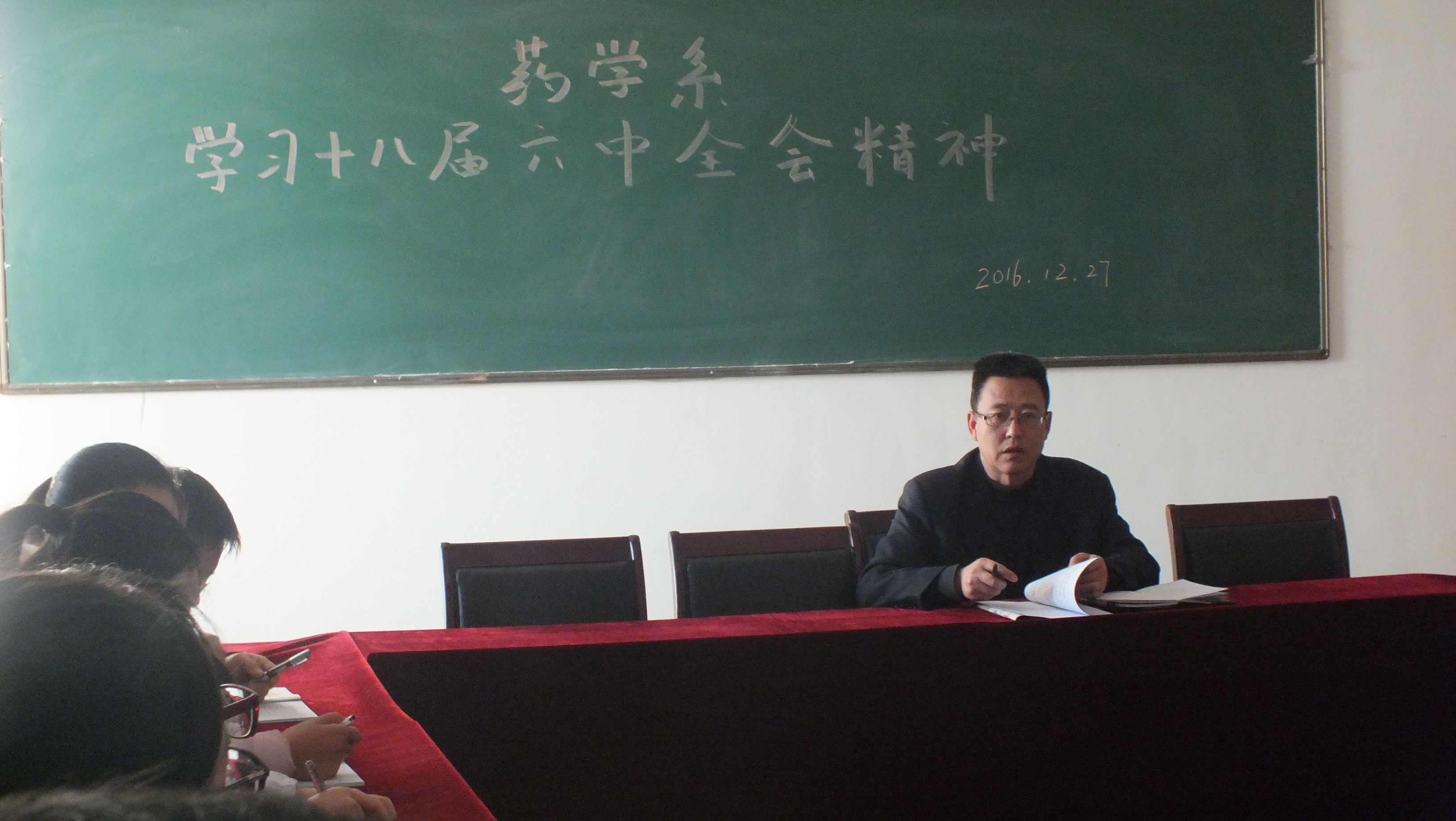 為認(rèn)真學(xué)習(xí)領(lǐng)會黨的十八屆六中全會重要精神,全面加強(qiáng)我系黨的建設(shè),更好地推動我系各項(xiàng)工作開展,2016年12月27日下午,藥學(xué)系在明遠(yuǎn)樓522會議室召開了黨的十八屆六中全會精神專題學(xué)習(xí)會。藥學(xué)系全體黨員和教師參加了本次學(xué)習(xí)會,會議由藥學(xué)系主任魏潤明主持。