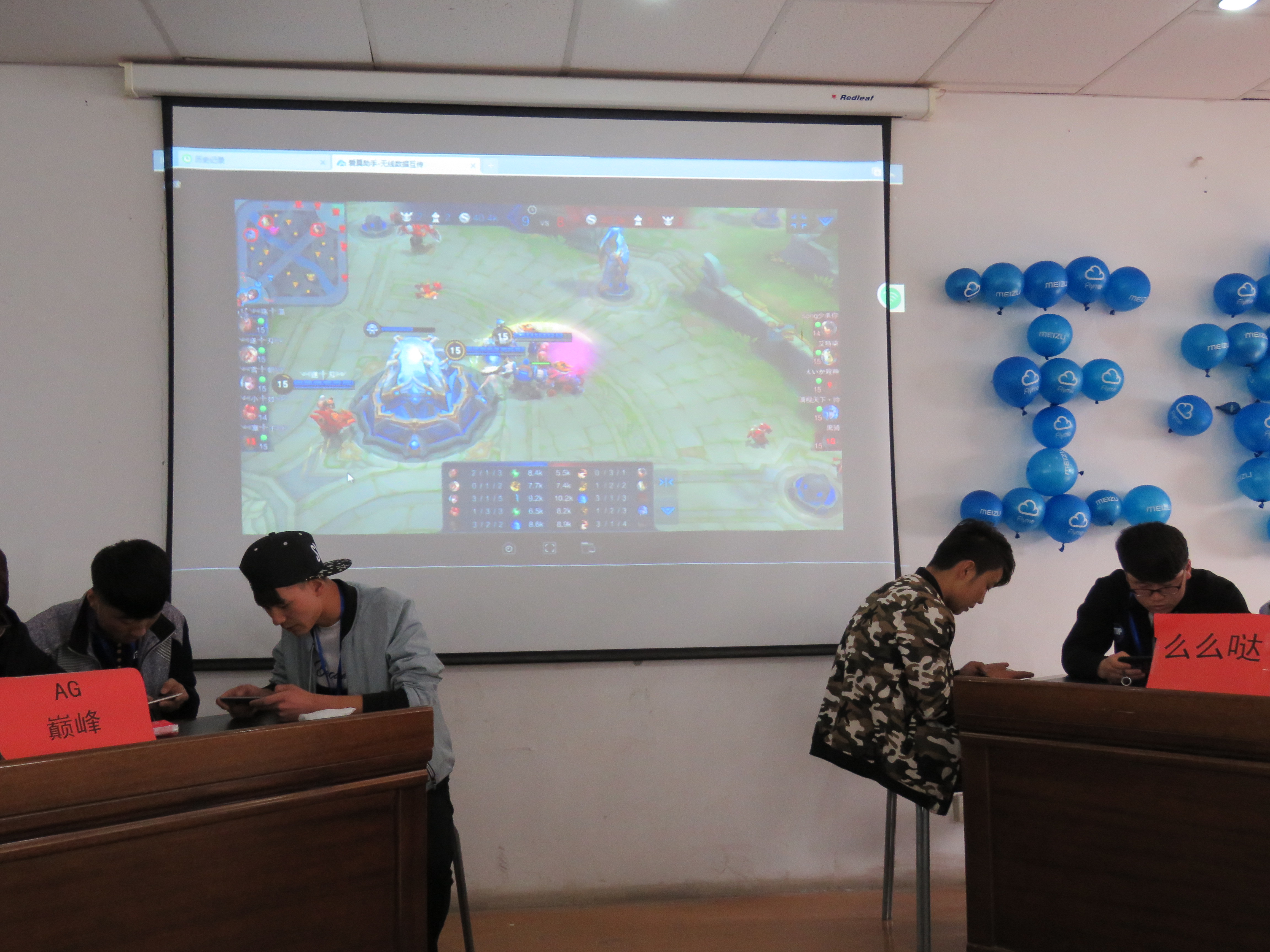 此次游戲競(jìng)技比賽以5人為一組的團(tuán)隊(duì)項(xiàng)目形式開(kāi)展。進(jìn)過(guò)預(yù)賽淘汰,最終有20個(gè)團(tuán)隊(duì)進(jìn)入決賽。基于事先充分的宣傳,16:40時(shí),不少同學(xué)到場(chǎng)加油觀戰(zhàn)并積極參與。一番調(diào)試之后,表演賽于17:00時(shí)正式開(kāi)始?,F(xiàn)場(chǎng)同時(shí)設(shè)有3個(gè)競(jìng)賽臺(tái),同時(shí)可供3隊(duì)團(tuán)隊(duì)進(jìn)行對(duì)決?,F(xiàn)場(chǎng)更是懸掛大屏幕,以跟進(jìn)賽程,滿足更多王者榮耀手游玩家的觀摩需要?,F(xiàn)場(chǎng)觀眾之心全然隨戰(zhàn)情跌宕起伏,場(chǎng)面激烈,氣氛活躍。參加夠級(jí)比賽的有6個(gè)組,采取首輪淘汰的制度,勝出的3個(gè)組打循環(huán)賽。事先制定了夠級(jí)的具體規(guī)則,然后按積分來(lái)判斷最后的名次。
