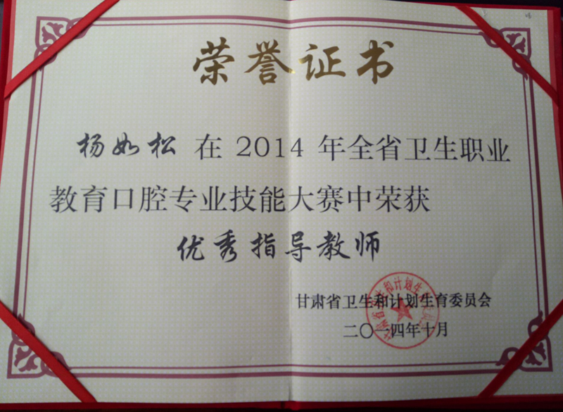 楊如松榮獲2014年全省衛(wèi)生職業(yè)教育口腔專(zhuān)業(yè)技能大賽優(yōu)秀指導(dǎo)教師