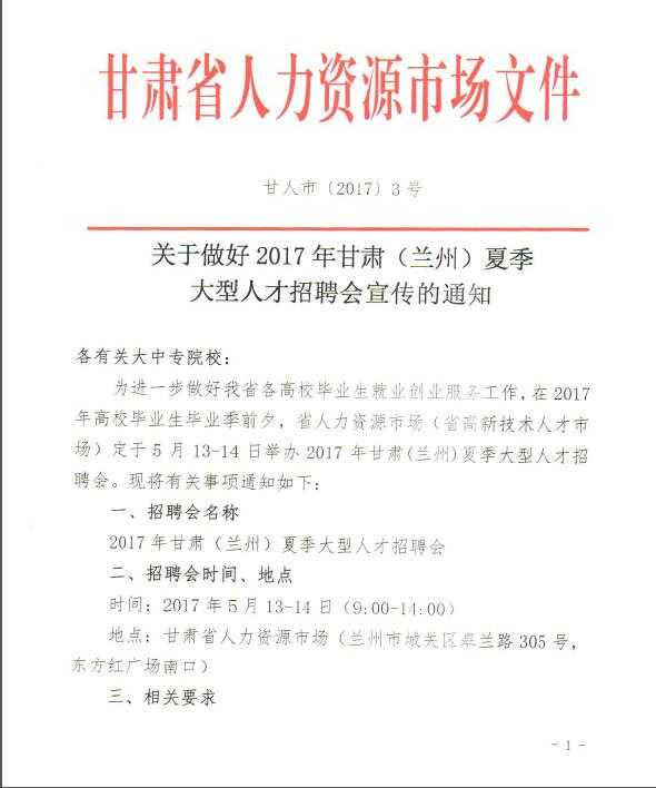《關于做好2017年甘肅(蘭州)夏季人才招聘會宣傳的通知》