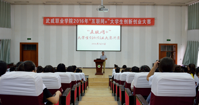 為貫徹落實(shí)《教育部關(guān)于舉辦第二屆“互聯(lián)網(wǎng)+”大學(xué)生創(chuàng)新創(chuàng)業(yè)大賽的通知》(教高函[2016]4號)精神,根據(jù)省教育廳《關(guān)于舉辦第二屆“互聯(lián)網(wǎng)+”大學(xué)生創(chuàng)新創(chuàng)業(yè)大賽甘肅省選拔賽的通知》(甘教高函[2016]22號)要求,進(jìn)一步激發(fā)大學(xué)生創(chuàng)新創(chuàng)業(yè)熱情,提高大學(xué)生創(chuàng)業(yè)能力,以創(chuàng)新引領(lǐng)創(chuàng)業(yè)、創(chuàng)業(yè)帶動就業(yè),推動畢業(yè)生更高質(zhì)量創(chuàng)業(yè)就業(yè),學(xué)院以主題為“互聯(lián)網(wǎng)+”時代,共筑創(chuàng)新創(chuàng)業(yè)夢想的大學(xué)生創(chuàng)新創(chuàng)業(yè)大賽于7月8日晚在尚德樓正德廳順利舉辦。出席本次大賽的領(lǐng)導(dǎo)有主管招生就業(yè)工作副院長潘玉華、教務(wù)處處長仲生仁、科研處處長張玉琴、招生就業(yè)處處長蔡柱山。