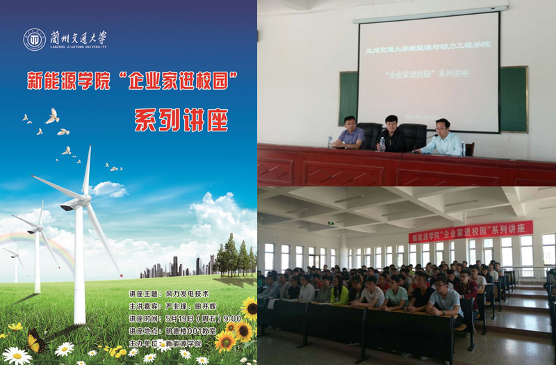 為促進(jìn)新能源專業(yè)學(xué)生就業(yè),加強(qiáng)與新能源企業(yè)的交流合作。5月19日上午,新能源學(xué)院邀請(qǐng)武威航天萬(wàn)源電機(jī)制造有限公司辦公室主任兼黨支部書記嚴(yán)兆鋒、技術(shù)部經(jīng)理田開輝兩位企業(yè)家在明德樓為新能源科學(xué)與工程全體學(xué)生做了以“風(fēng)力發(fā)電技術(shù)”為主題的講座。本次講座由新能源學(xué)院辦公室副主任任陶主持。