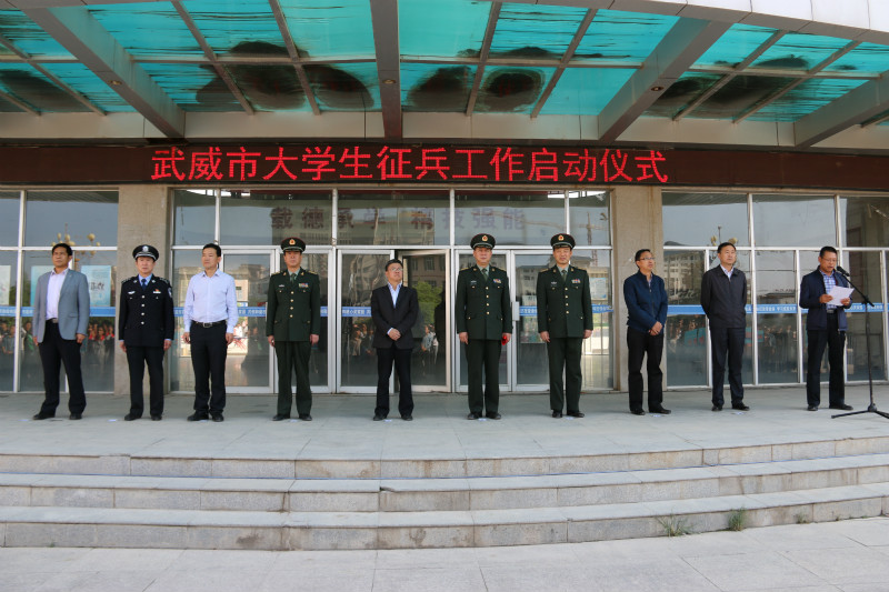 5月15日下午,武威市大學(xué)生征兵工作啟動儀式在學(xué)院尚德樓北廣場隆重舉行。武威市政府副市長胡細如和武威軍分區(qū)司令員萬發(fā)中出席啟動儀式并做了講話,武威軍分區(qū)政委周小平、參謀長孫武奇,市委宣傳部副部長陳萬能,涼州區(qū)委常委、常務(wù)副區(qū)長高加志,市教育局督學(xué)張應(yīng)偉、市民政局雙擁辦副主任楊光鈺、市公安局副調(diào)研員陳振亞出席啟動儀式。武威日報社、廣播電視臺的媒體朋友和我院1000多名師生代表參加啟動儀式,學(xué)院副院長王永緒主持啟動儀式。