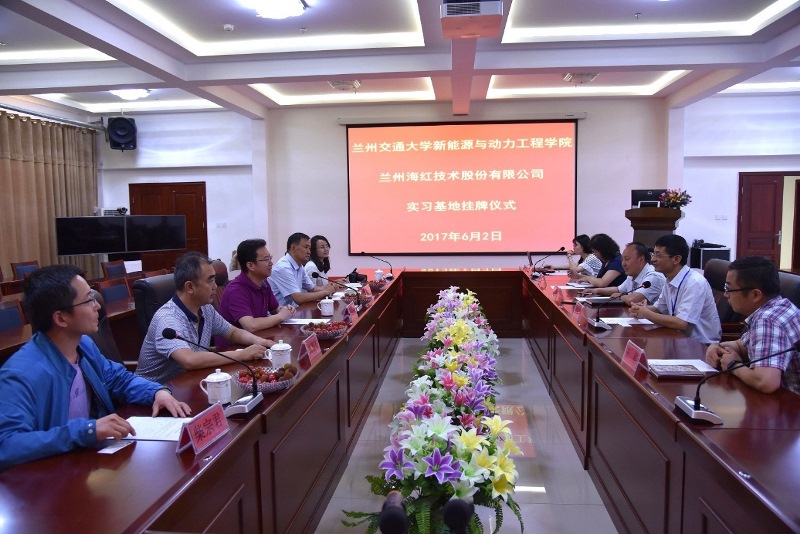 6月2日下午新能源與動(dòng)力工程學(xué)院蘭州海紅技術(shù)股份有限公司教學(xué)實(shí)習(xí)基地掛牌成立。蘭州海紅技術(shù)股份有限公司董事長(zhǎng)曹振海、副總經(jīng)理田愛軍、人力資源部經(jīng)理王蘭花和新能源與動(dòng)力工程學(xué)院院長(zhǎng)董海鷹等出席了揭牌儀式。