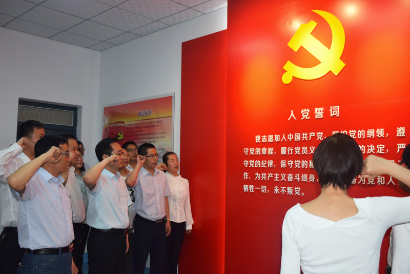 “我志愿加入中國共產(chǎn)黨,擁護(hù)黨的綱領(lǐng),遵守黨的章程……” 全體黨員同志在任陶的帶領(lǐng)下,鄭重地舉起右手,面對鮮紅的黨旗再次莊嚴(yán)宣誓。誓詞擲地有聲,鏗鏘有力,讓全院黨員同志得到了一次思想洗禮,一次精神激勵(lì)。任陶指出,重溫入黨誓詞,是“兩學(xué)一做”學(xué)習(xí)教育的重要內(nèi)容,是黨性的再熏陶、再教育,目的在于立起黨員的標(biāo)桿來,喚起“入黨為什么”“在黨干什么”的重新思考。