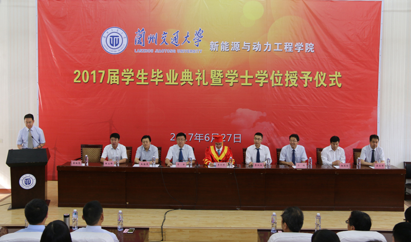 四載辛勤耕耘,一旦收獲碩果。6月27日上午,新能源與動力工程學(xué)院2017屆畢業(yè)典禮暨學(xué)位授予儀式在尚德樓正德廳隆重舉行。蘭州交通大學(xué)黨委副書記、常務(wù)副校長李引珍,黨委(校長)辦公室副主任李紅紅、學(xué)生處處長貢力、招生就業(yè)處處長蘇程、教務(wù)處副處長王海涌、財(cái)務(wù)處副處長楊在忠、校團(tuán)委書記張立峰,武威職業(yè)學(xué)院副院長翟存祥,新能源與動力工程學(xué)院院長董海鷹、副院長姚翔飛、副院長湯旻安出席了典禮。新能源與動力工程學(xué)院256名畢業(yè)生及師生代表共同參加了典禮。典禮由新能源與動力工程學(xué)院院長董海鷹主持。