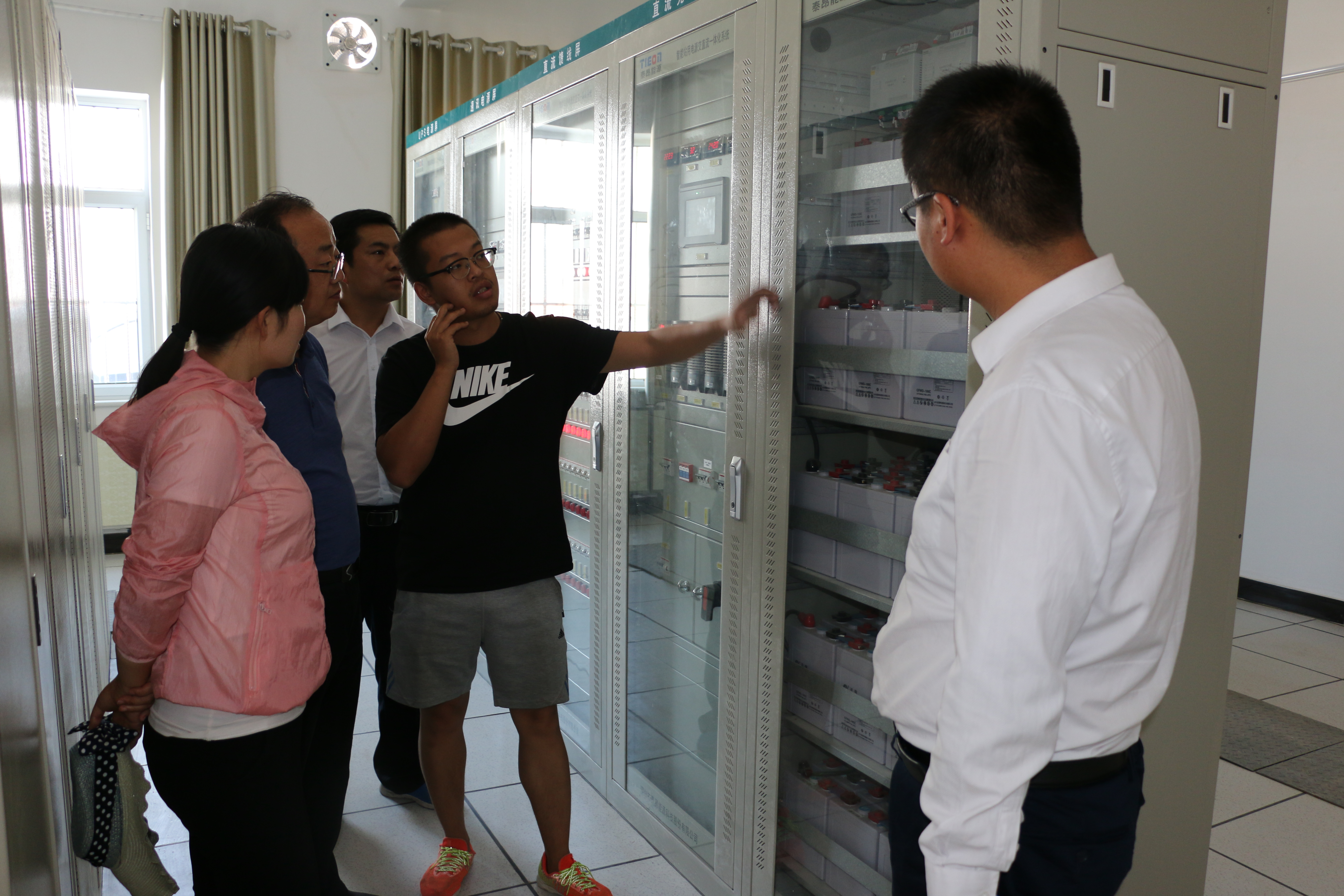 全體教師在電站技術(shù)人員帶領(lǐng)下,依次深入值班調(diào)度室、控制柜室、SVG室(無功功率補償)、110升壓變電站、開關(guān)柜室以及光伏陣列進行觀摩學習,全體教師在調(diào)度室查看監(jiān)控系統(tǒng),查看分析設(shè)備運行情況等,通過現(xiàn)場培訓學習,使老師們近距離熟悉了光伏支架,組件陣列、逆變器、控制器、匯流箱、配電柜等設(shè)備的安裝施工,實踐學習了光伏系統(tǒng)集成設(shè)計以及并網(wǎng)技術(shù)等,特別是對光伏電站運行安全操作規(guī)程進行了系統(tǒng)掌握。