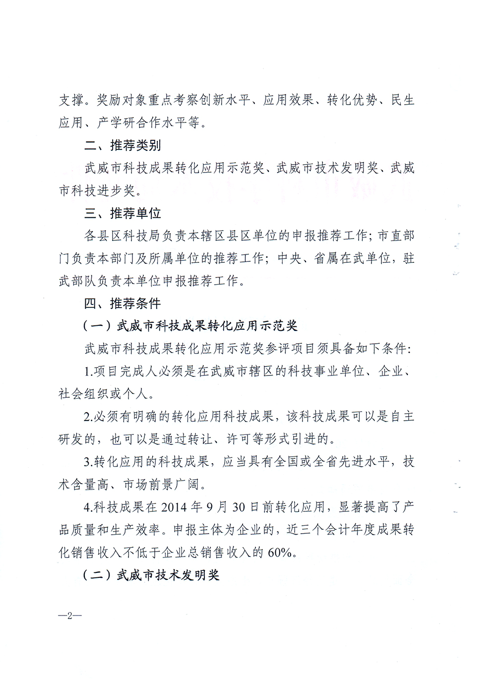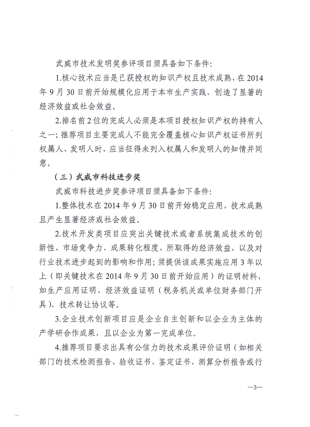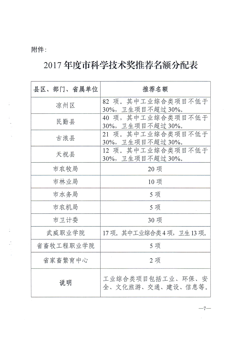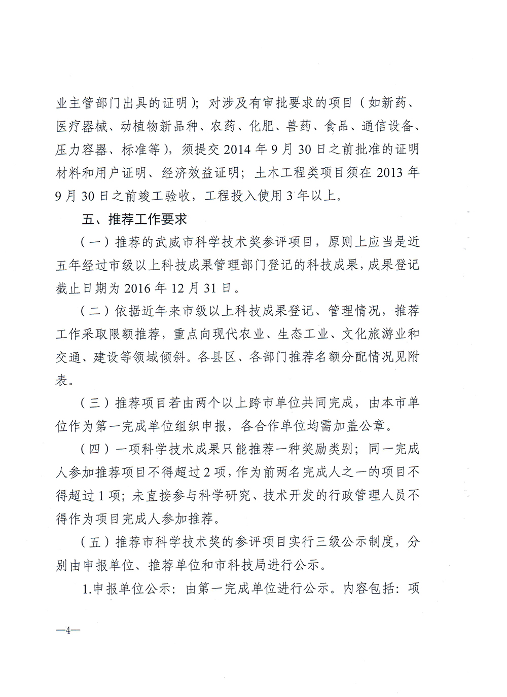 關于做好2017年度武威市科學技術獎推薦工作的通知
