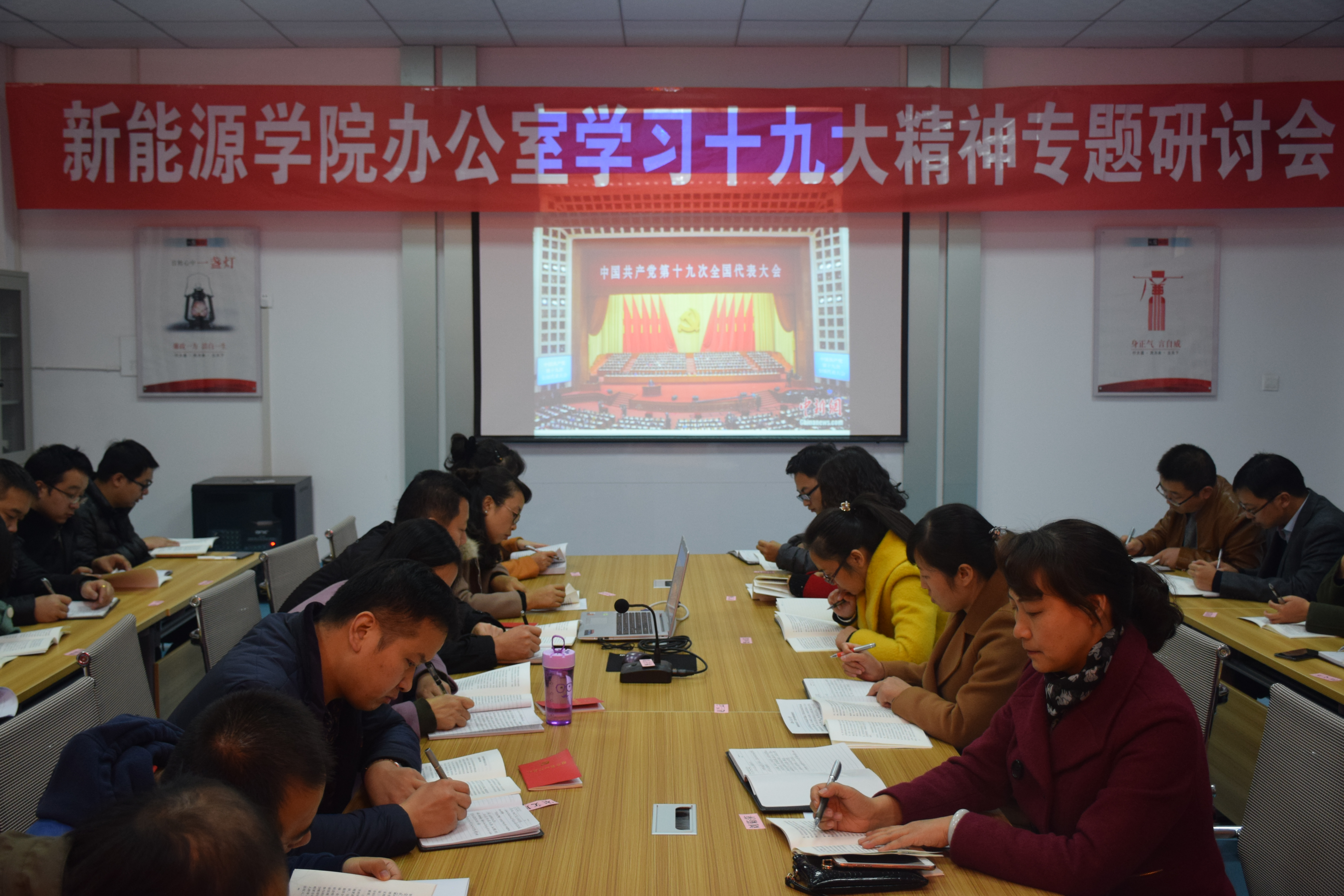 為認(rèn)真學(xué)習(xí)貫徹黨的十九大精神,深入領(lǐng)會習(xí)近平新時代中國特色社會主義思想,準(zhǔn)確理解和把握新時代我國社會主要矛盾變化以及經(jīng)濟(jì)領(lǐng)域的重大問題。11月23日下午,新能源與動力工程學(xué)院組織全體教職工在黨員活動室召開學(xué)習(xí)十九大精神專題研討會。會議由新能源與動力工程學(xué)院辦公室黨支部書記任陶主持。